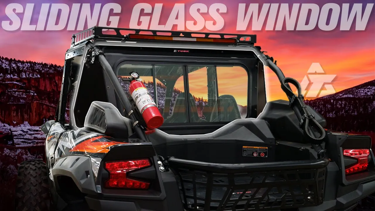The Tusk Polaris General Sliding Rear Glass Window enhances your ride with comfort, airflow control, and clear visibility. Made from scratch-resistant automotive safety glass, this rear window mounts securely to your stock roll cage and complements your front windshield setup for an improved cab experience.